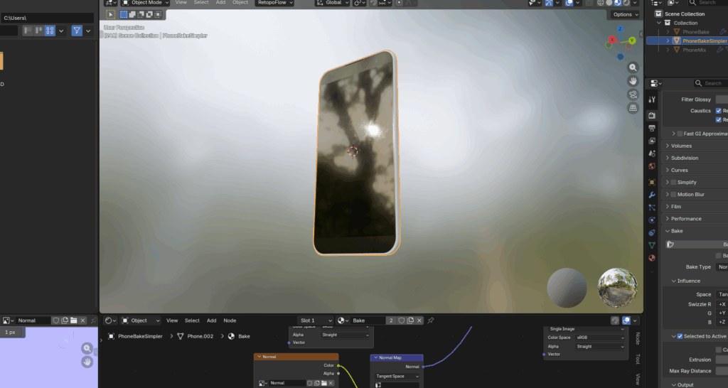• The phone is set to be translucent when opened, so to help the player see what’s happening around them. I had to account for transparent backface culling on the phone model to allow this though, otherwise you’d be able to see parts of the phone model’s insides!
